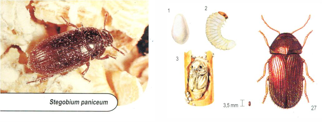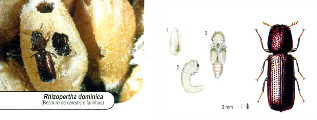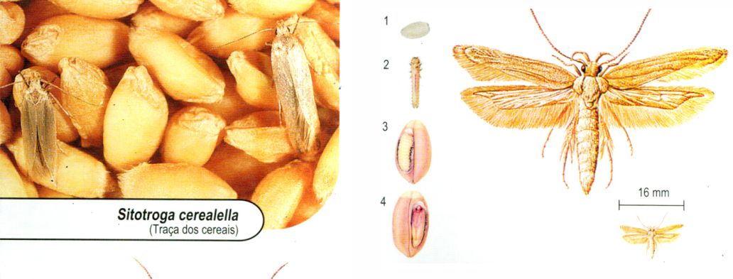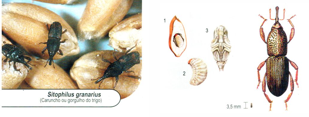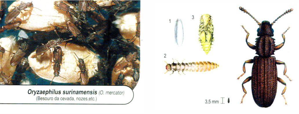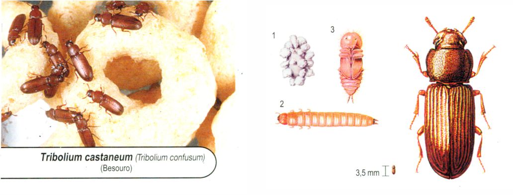 Principal praga dos cereais armazenados e também de produtos acabados (macarrão, biscoito, etc.)