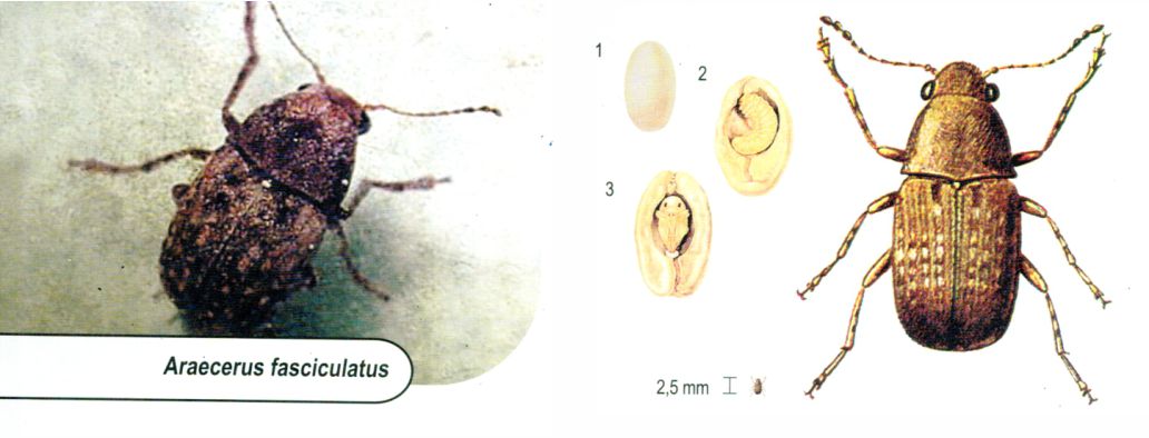 Larvas – São imóveis, alimentando-se vorazmente do próprio grão. Desenvolvem-se dentro dos grãos formando galerias.